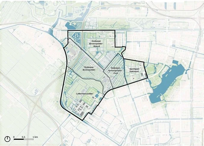 De Tuinen van West bestaat uit de Osdorper Binnenpolder-Noord, de Osdorper Binnenpolder-Zuid, Osdorper Bovenpolder en de Lutkemeerpolder. Sportpark Ookmeer hoort ook bij het plangebied.
